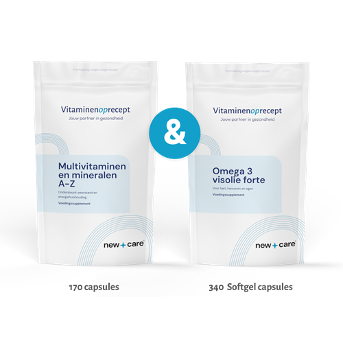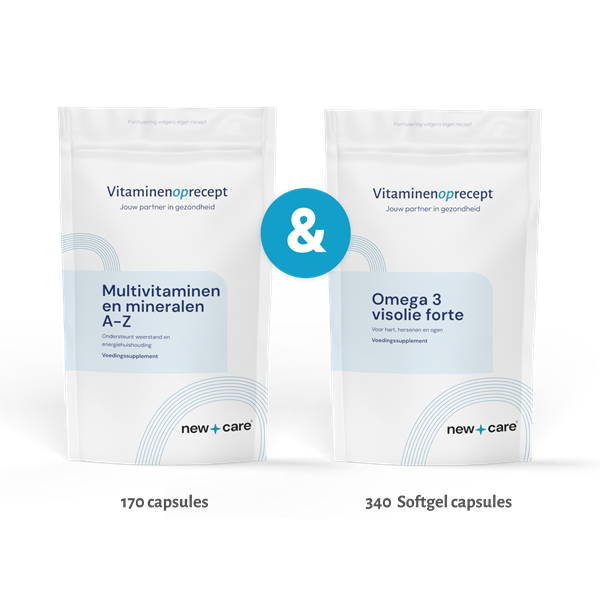 - Met Multivitaminen en Mineralen A-Z (170 stuks) & Omega 3 Visolie Forte (340 stuks)