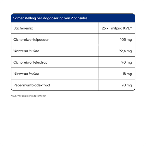 - Hoog gedoseerde probiotica mix met 20 bacteriestammen