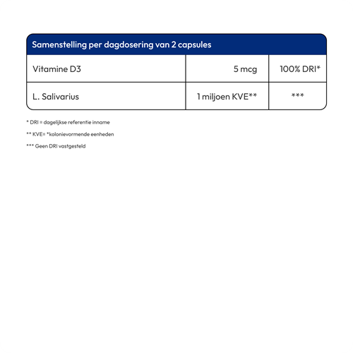 - Bevat de bacteriestam: Lactobacillus salivarius S1 & Vitamine D3
