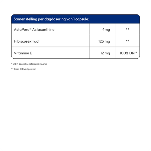 - 100% natuurlijke astaxanthine (Astapure®) - 4 mg per capsule